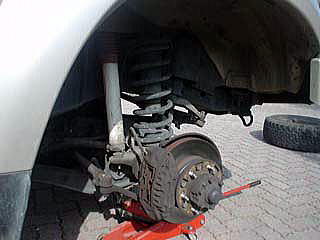 この車は、前後ともフルフロートアクスルを採用しているために、はぶの部分が出っ張っており、タイヤの穴ををボルトに合わせるときにはずっと支える必要がないため、大きなタイヤの割には割と楽にできた。