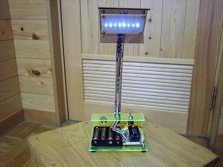 電池と基盤の隙間も最小限にして、横方向にはコンパクトに仕上げてみた。これくらいの方が見た目のバランスはよいし、材料も節約できる。(アクリル板は意外と高価)