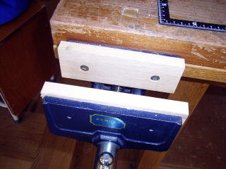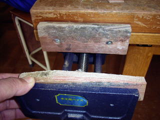 技術室の木工万力。5年も経つとさすがに痛んでくる。 また、金工万力の数が少ないので、ペンスタンドの台を削るのに利用しているのも、痛みを促進している。 いくつかの口がね(?)部分を換えることにした。