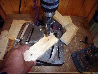 2年前に使った1年生の題材用で切り取った天板の残りを使用。 かなり堅いラワン材。 2段の木工ドリルがなかったので、6mm、10mmと順に穴を開ける。 きれいになって気分一新。