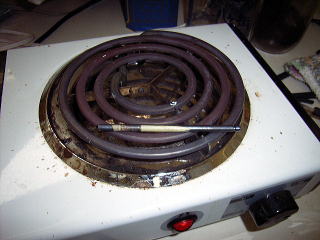 まず、鉄の棒をコンロで熱する。