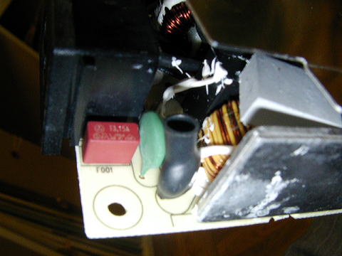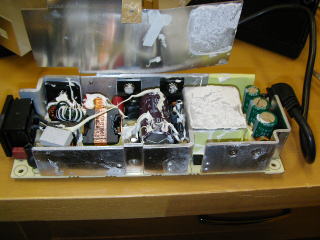 そうなると、大電流を出す(定格16V7.5A)アダプタなので何かあっては大変なことになるから、定格の書いてあるパネルとDC側のコードだけ取っておいて、後は危険物として捨ててしまいました。