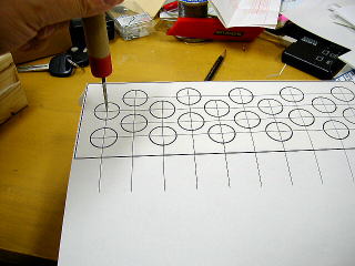 花子にて、穴の間隔を考え配置したものを印刷。結局寸法線の入れ方がわからず、同尺の図のみで作った。