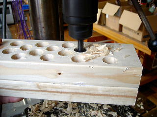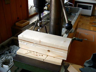 21mmのショートビットで穴あけ、ボール盤で行ったが、どんどん入り込んでいってしまうので、ドリルの刃を固定して、材料を持ち上げて穴あけをした。