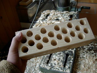 できあがりはこんな感じ、すべて貫通させたが、裏側は壮大に割れてしまっていた。