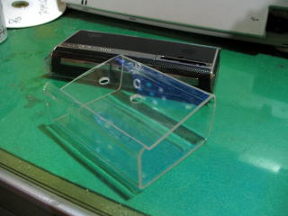 こちらはアクリル材。LEDライトの台座に使い、失敗したものを流用しているので穴が空いているのはご愛敬。