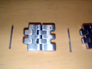 今まで全く気づかなかったけれど、時計のバンドにはピンを抜く方向に矢印が入っている。 小さな真鍮釘を打ち込んで抜き取った。 抜いたコマと割ピン。つなぐときは矢印の反対側から差し込んでハンマーで打って留めた。 無事に使えていてありがたい。