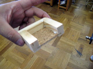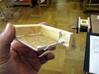 丸鋸で板をカットして、底板を入れる溝をひく。どちらも1年生のあまり材を使用。