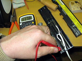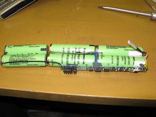 ばらした状態。ちゃんと国産パナソニックのCGR18650Aを使っている。この時点でバッテリーだけ購入して取り替えようかとも思ったけど、1つ1400円くらいするので6つで8400円。これなら安いリビルト品が買えるのでやめた。