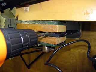 バッテリーの側面、脚になっている部分に穴をあけて線を引き込む。