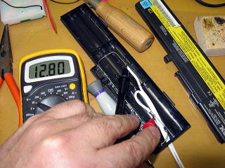 まずは、オークションで落札したジャンクのバッテリーをばらす。この電池を外して代わりに外部からバッテリーをつなごうという計画。ちなみに、このバッテリーは200円で落札して送料が160円。