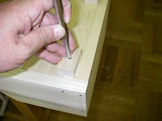 中へつける部分の加工。ボンドと釘で組み立てるが、組み立ての順番を間違えると釘が打てなくなる。