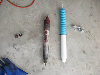 とりはずしたランチョと新品のプロコンプ。これは前用。ランチョは完全に抜けてしまっている状態。