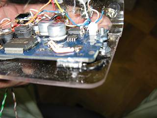 裏側は、チップ抵抗などを外した後、ジャンパー線を飛ばしたり、ライン入力を空きランドへ接続したりする。