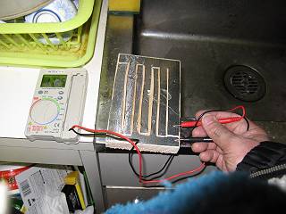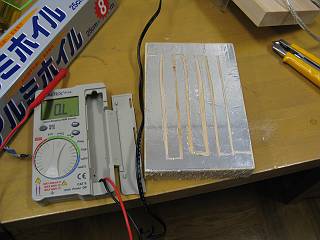 しかし、その後水を拭き取っても抵抗が無限大には戻らなかった。木の板がしめってしまうのでだめらしい。