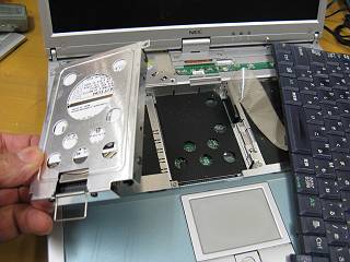NECのLavie C。これは何度も分解しているが、ねじを外さずにHDDまでアクセスできる。