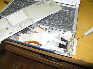 裏側には、xp homeのプロダクトIDがついているので、学校のDELL製ノートパソコンについていたセットアップCDを使って再セットアップしてみた。HDDは80GBの新品。