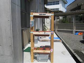 結局支えの木は動いて外れるので、プランターの幅に合わせて切ってはめ込んだ。