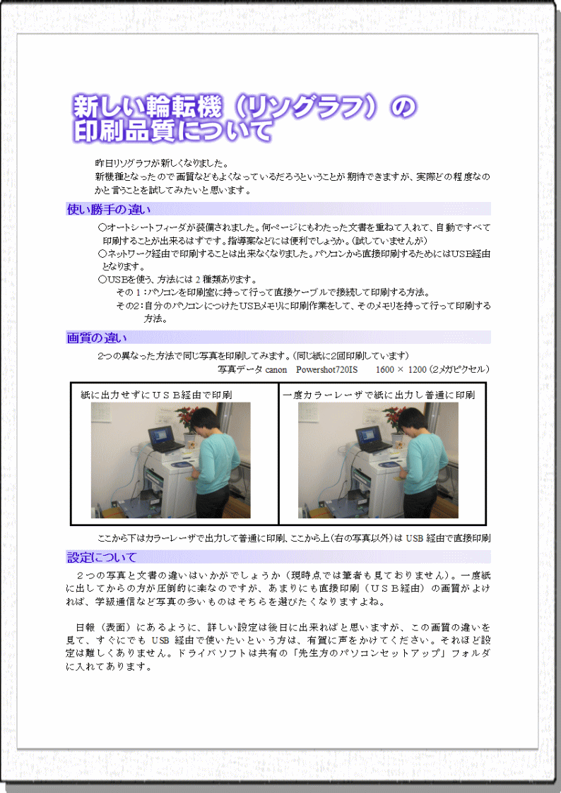 しかし、新しい輪転機はきっと機能向上しているだろうと言うことで入れ替えられた日にいろいろと試してみた。