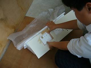 位置決めと周りのマスクのために、合板に取り付ける。