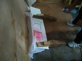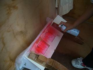 そこへスプレーをかけて色をつける。今回は赤にした。
