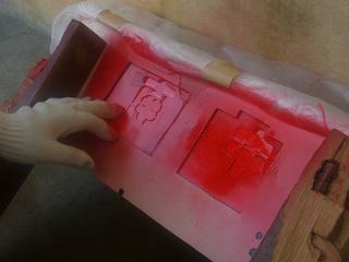 型を使って、スプレーで書くのが効率がよいだろうと言うことになり、「花子」を使ってプリントアウトした。