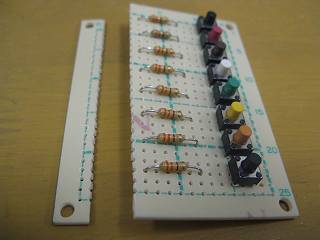 基板上に制限抵抗とタクトスイッチを並べる。