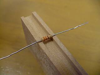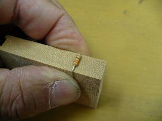 ハンダ付けを考えたとき、抵抗の足を曲げるための治具があってもいいかなと思った。