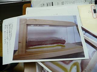 先日作った地層観察の教材にゼリーを入れて褶曲の実験をしている写真。
