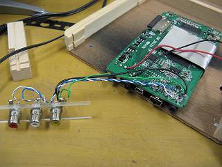 映像を見ながら、コネクタ部分のハンダ付けしてあるところへ線を接続する。