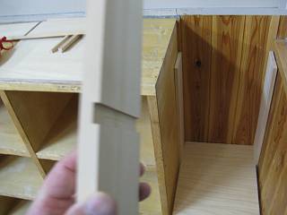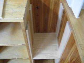 柱の間はものが落ちてはいけないので,同じ板を削ってはめ込んで固定。