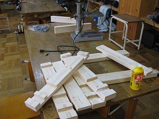 上の部分は前後に材を渡して構造体とし、固定用の穴の下にもう一本入れてボルトで留めた。
