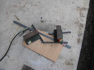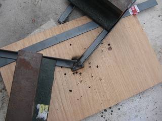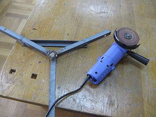 続いて接合。3脚なので120°に開いて押さえつけて溶接する。