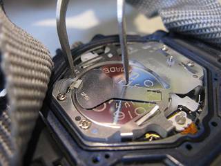 そこで,ダメ元で何とかやってみようと言うことでネットを徘徊すると,裏蓋とムーブメントをスプリングで導通させてやらないとだめらしいことがわかる。