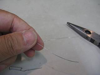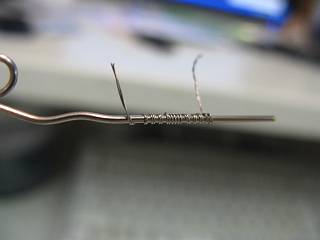 クリップの針金に,芯を2本撚ってから巻いてみる。