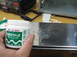 シリコングリスがなく普通のグリスを使ったが、やはりこれはだめだった。右側はコードを通す溝を切っているところ。