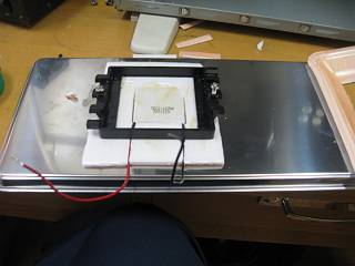 最初は枠を発泡スチロールごと挟んでみたが、密着しなかったので、やり直してみた。