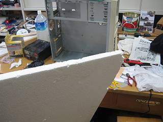 あとは、下の段に断熱材を入れることにする。発泡スチロールで周りを囲んでみる。