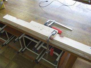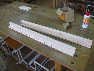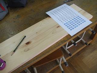 1年生の木材加工製作であまった檜を使う(節の多いものを利用)