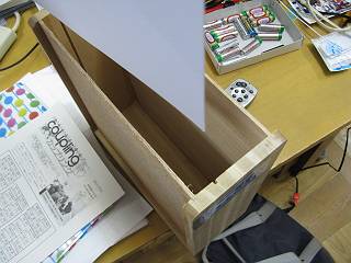 間にも溝を入れておいたので,厚紙で敷居を入れてプリントを入れる場所にした。