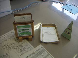 その当番標と、電話メモ入れのセットを一緒に回しているのだけれど、かなり古くなって壊れていたので、機械に慣れるために当番標を製作してみた。