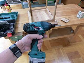 吸い付き桟を内側にして、まく板とコーススレッドで固定することにした。電気ドリルはちょっと古いが、インパクトドライバはハイパワーなものだった。