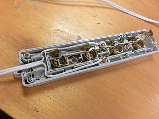 まずは、テーブルタップ。前の学校でコンピュータ室の入れ替えをしたときにもらっておいたものを使う。