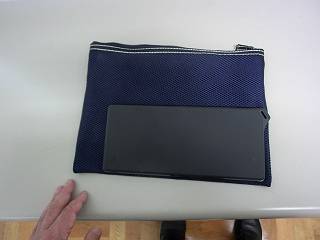 これが105円にてセリアで購入したケース。縦も横も長いのと、いちいちジッパーで閉じるのは気に入らない。