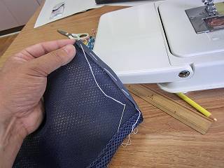 ここは細かい作業なので、しつけ糸を使ってしつけてからミシンで縫った。
