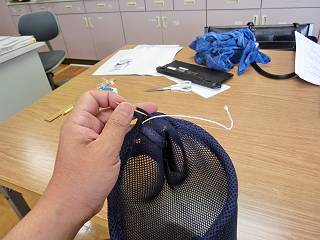 今度は口の側。ゴムの袋部分を考えて、もう一度長さを決めて切断した。
