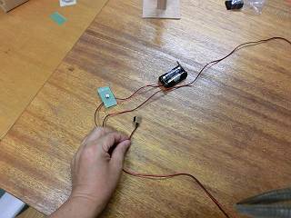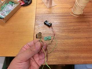 実は銅板がなかったので、真鍮板でやってみた。スイッチを押しても反応はするがタップには至らない。