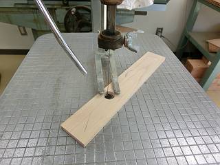 半分にした片側に切り出しの方を写して糸のこ盤でくりぬく。