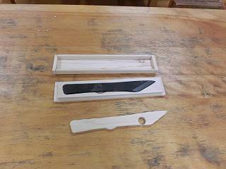 抜いた方は幅を詰めて、蓋が被さるようにする。蓋は縦引きで中をさらって、両端に縁を接着。