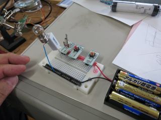 これが、実験セット。手元に一つ置いておけば授業以外にちょっとした回路を試すのにもいいかと思う。